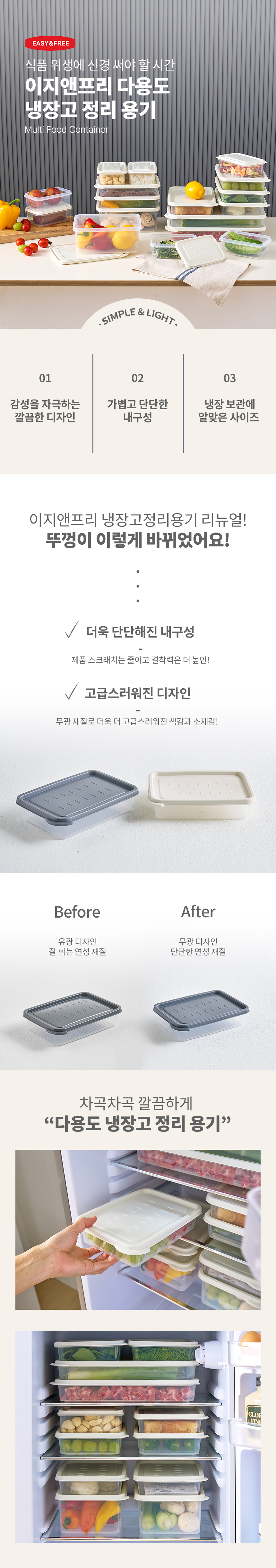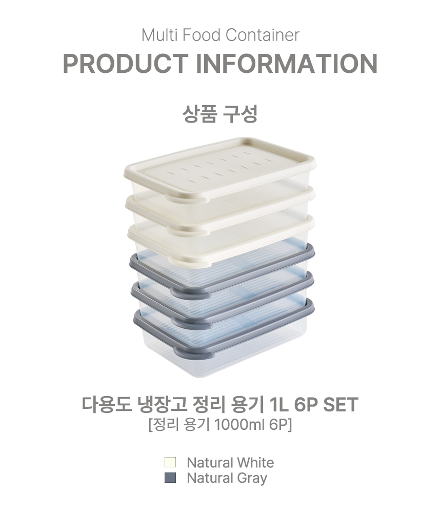 냉장고 냉동실정리용기 밀폐용기 전자레인지용기 이지앤프리 차곡 1l 6개입