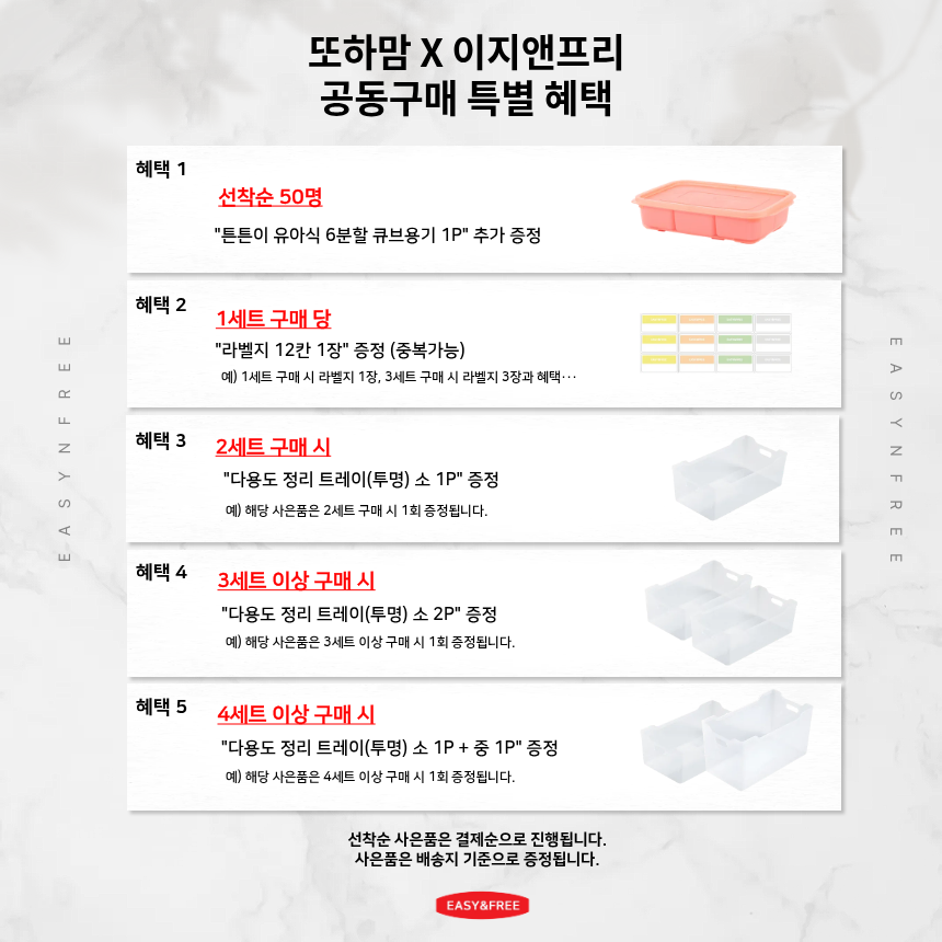 [또하맘 X 이지앤프리] 이지앤프리 튼튼이 웨이브킵 1,700ml 3칸 나눔용기/ 6칸 큐브용기 + 사은품증정