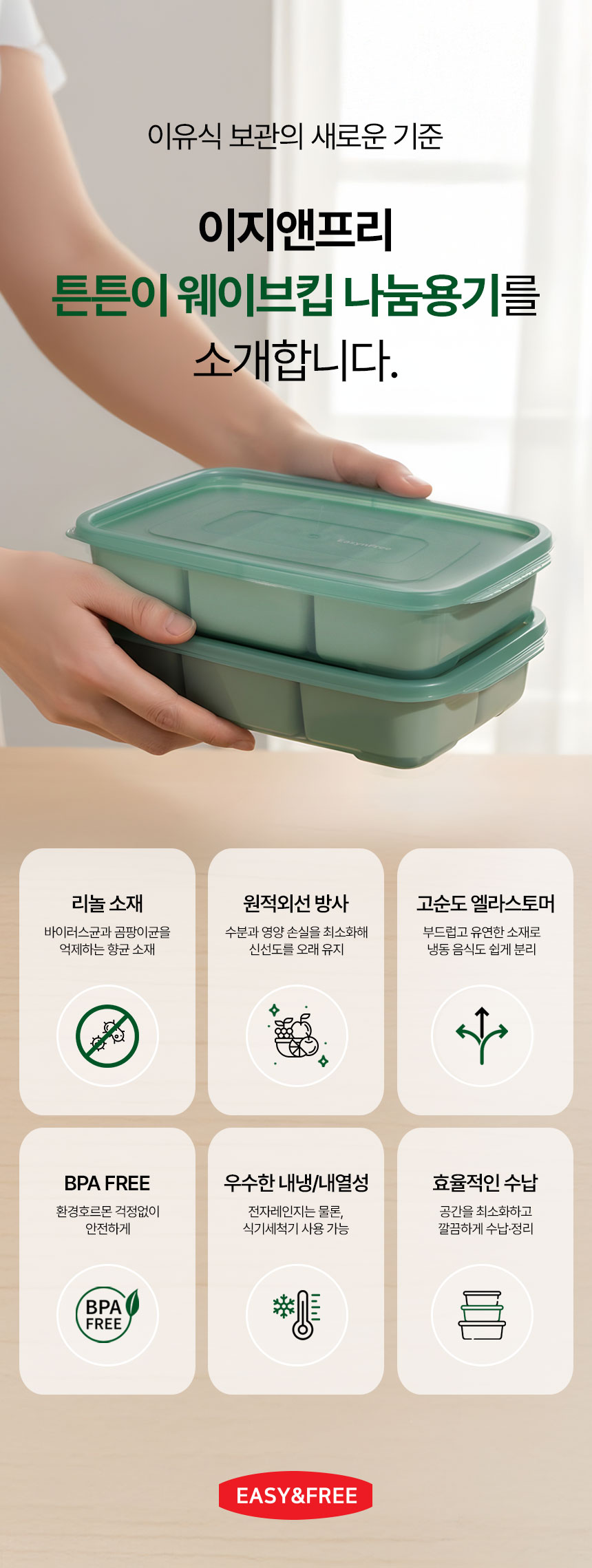 이지앤프리 튼튼이 웨이브킵 1,700ml 3칸 나눔용기+6분할 큐브용기 / 이유식큐브보관 , 유아식보관, 냉동밥보관, 밀키트 소분 등 다양한 용도로 활용 가능 합니다.